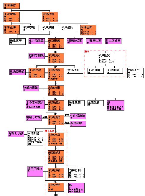 なんでか米津氏という1万石の小大名の家系図。