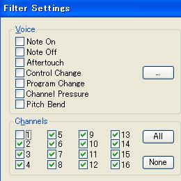 ③Channelsの「ALL」を押したあと、演奏したいトラック(ここでは1)のチェックを外す。