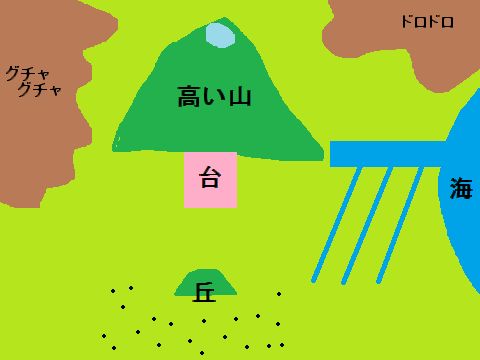 ●高い山のまわりには小さい丘がある。まわりの黒いポツポツは集落です。この丘は何かというと「神様からの使いをお迎えする台」です。偉い方のお使い、すなわち助さん格さん天使です。まさか空から降りてくるのか…まさしく天降(あも)りましてくるわけです。私が最初にアトランティス人を「鳥人族」と書いてたのはそのせいです。